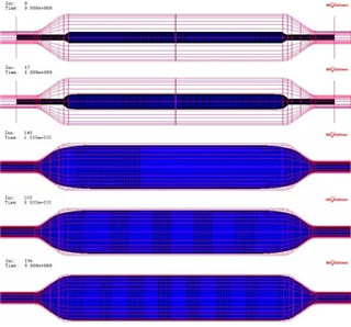 数值模拟法为球囊成型机理的研究提供了一种新的思路,它可以代替试错实验快速确定管坯的尺寸及成型过程参数的优选,因此为克服传统试错法的弊端,促进新球囊的开发以及球囊生产过程适当工艺条件的确定,本研究采用有限单元数值分析方法,研究球囊成型过程工艺与壁厚的关系。