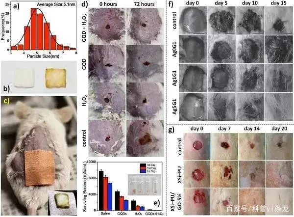 f)PAA–银纳米颗粒–rGO水凝胶治疗伤口的照片;