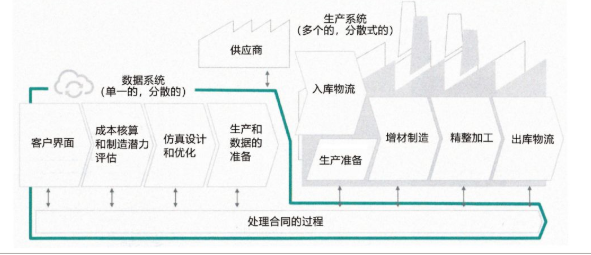 图 2:利用云系统控制下的生产组织软件系统 Bionic Smart Factory 4.0 实现的增材制造过程。