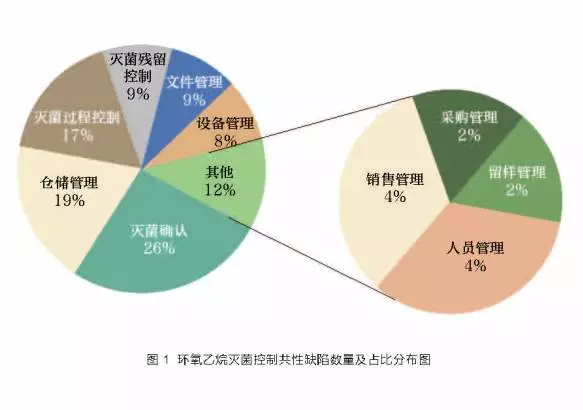 进一步统计可看出,灭菌控制常见共性缺陷数量多达53 种,其中以灭菌确认、仓储管理、灭菌过程控制3 个方面的共性缺陷数量最多,占比分别为26%、19% 和17%,三者合计占比达到了62%(图1)。一方面反映出生产企业对灭菌设备的系统设计、安装和验证方面经验的严重不足,过分依赖供应商;另一方面也反映出灭菌操作人员缺乏系统培训,在按照法规标准要求制定适合本企业产品的灭菌工艺文件、操作规程、检验规程,并严格按照文件要求进行记录方面意识薄弱,能省就省,成为灭菌安全性和有效性的隐患。