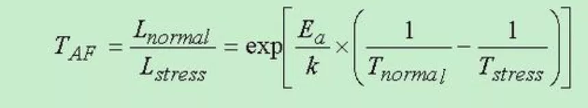 温度加速因子由Arrhenius模型计算:
