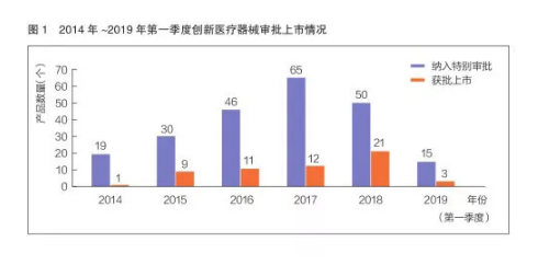 《创新医疗器械特别审批程序(试行)》(2017年修订为《创新医疗器械特别审查程序》)实施以来,截至今年第一季度,我国已有225个产品进入创新医疗器械特别审查通道,其中57个创新医疗器械通过特别审查程序上市。这些产品多为国内首创、国际原创或具有重大技术提升,填补了相关领域的空白。其中,今年一季度有15个产品纳入创新医疗器械特别审查程序,有3个产品获批上市。